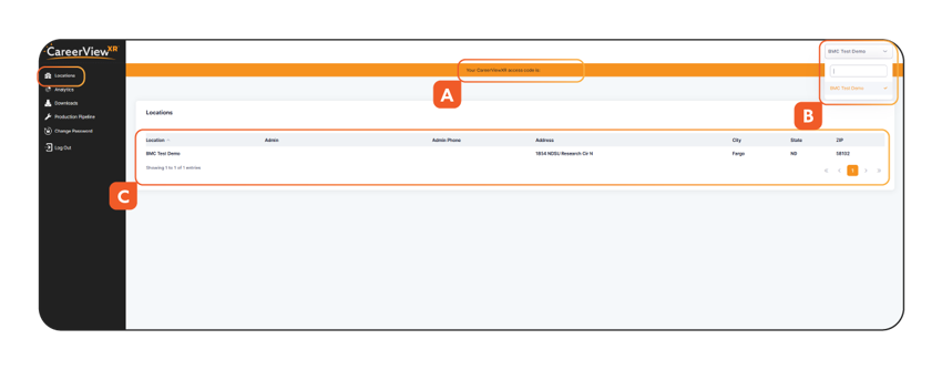 The Admin Dashboard is a central location for CareerViewXR admins to download VR video files, view location analytics, and more.