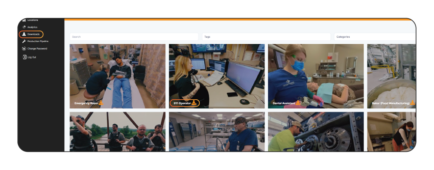 The Downloads tab provides access to download every 360° VR video file that is currently available on the CareerViewXR platform. These videos are 4k resolution and can be used by putting them onto your VR headset’s SD card or placed into your VR headset’s folder structure.